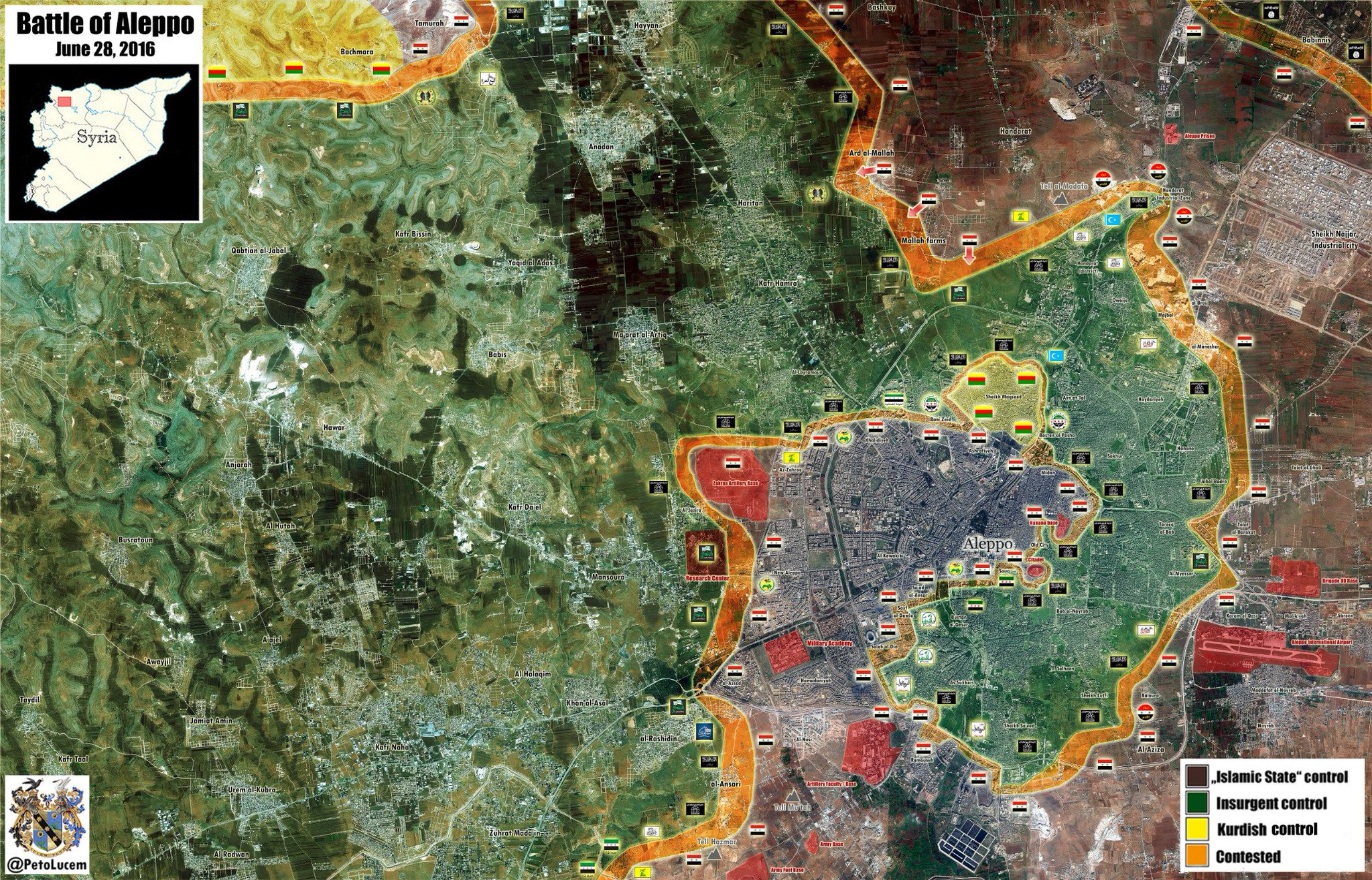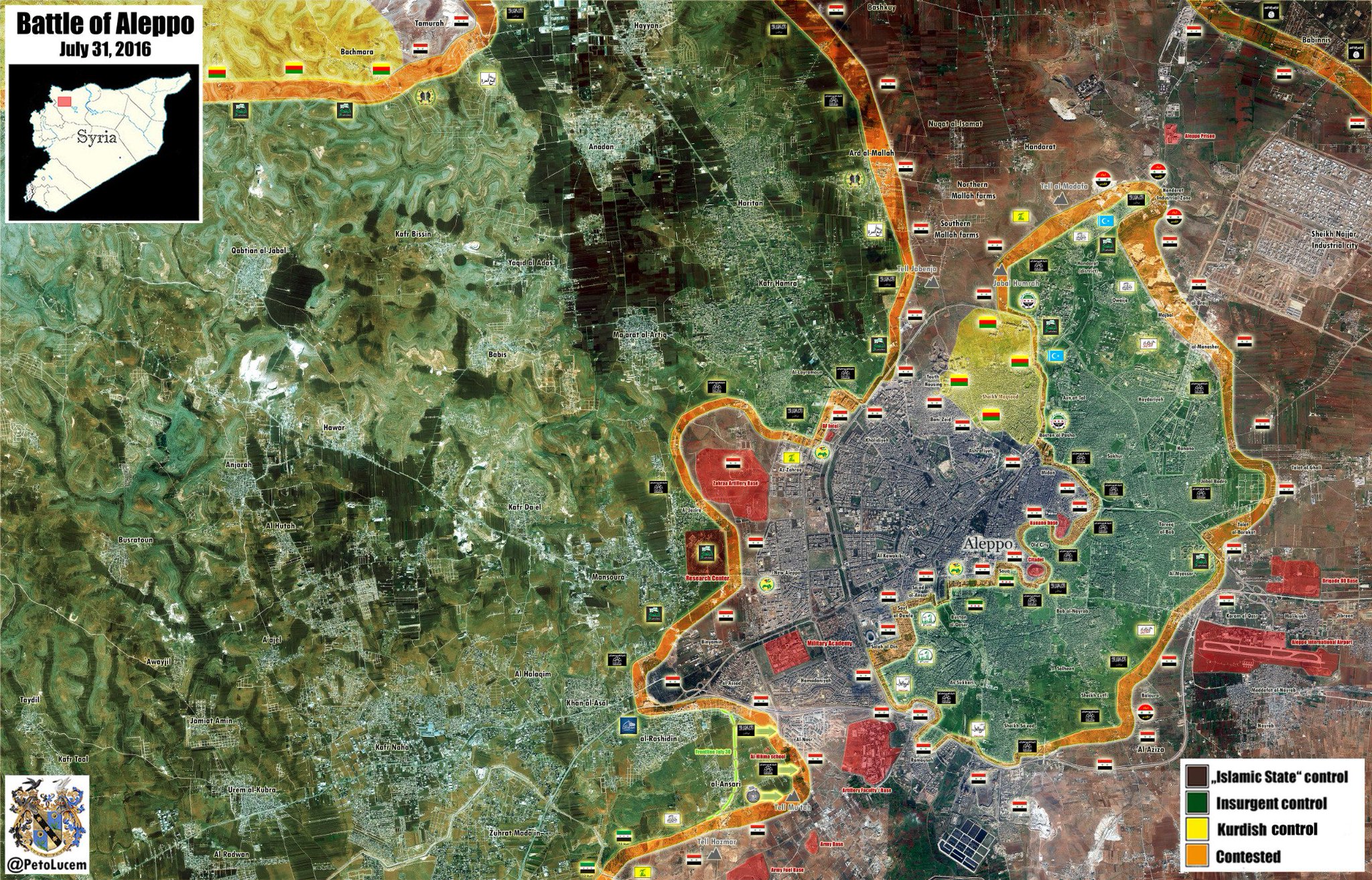 Cartes de la bataille d'Alep (siÚge) de juillet 2016 réalisées par Peto Lucem :
