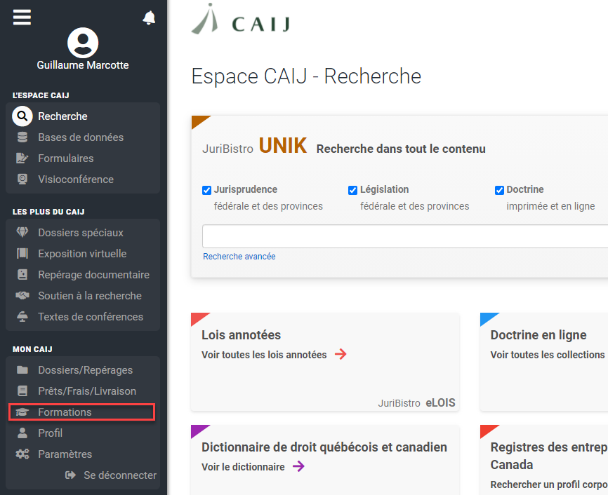 Le CAIJ offre aussi des formations en ligne aux avocats du Québec[4]. Depuis 2017, la Collection de droit du Barreau est aussi disponible en ligne par l'intermédiaire des ressources du CAIJ[5].