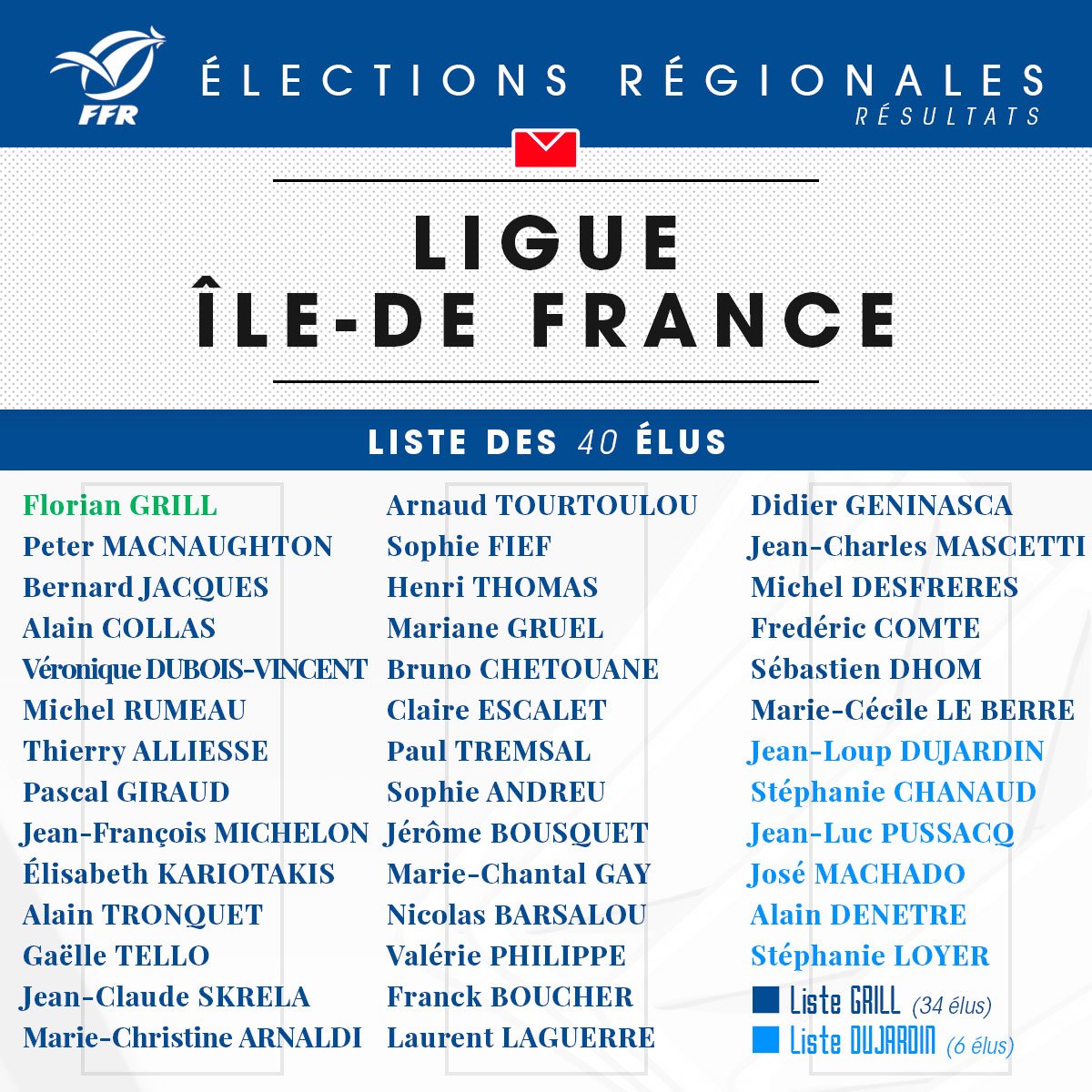 - « Élections à la FFR : Florian Grill dévoile sa liste », sur www.lequipe.fr, L'Équipe, (consulté le ).