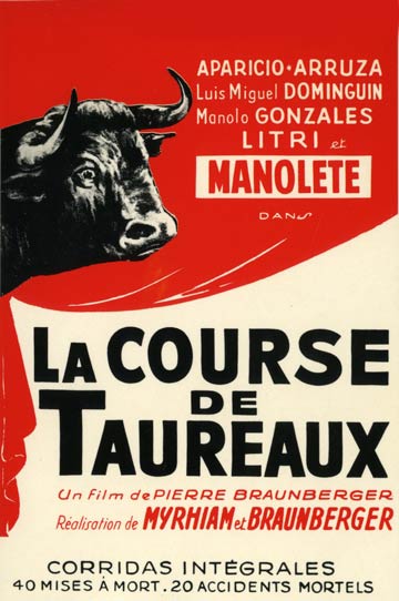 La Course de taureaux est un film documentaire réalisé par Pierre Braunberger et Myriam, sorti en 1951.